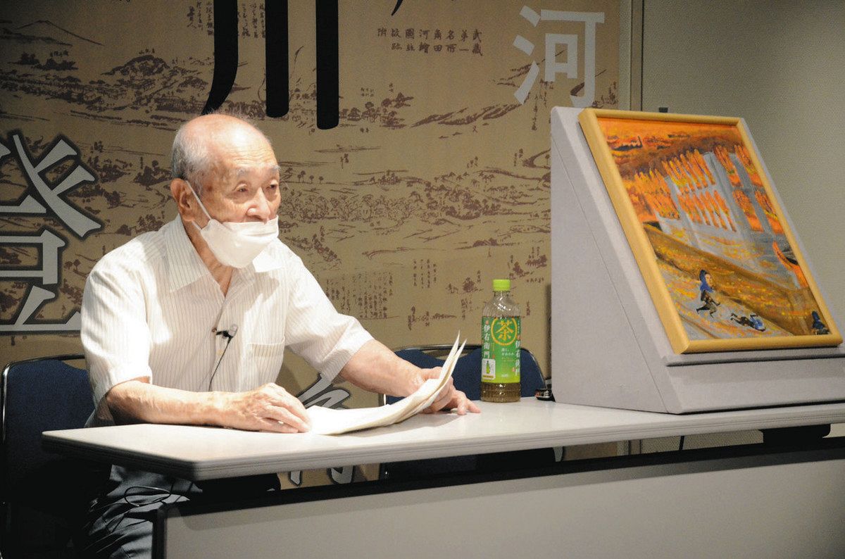 すみだ郷土文化資料館(東京都墨田区)が所蔵する東京大空襲の体験画を描いた豊田照夫さん(89)と西尾静子さん(85)のギャラリートークが同館であり、約35人が2人の体験や平和への思いに耳を傾けた。