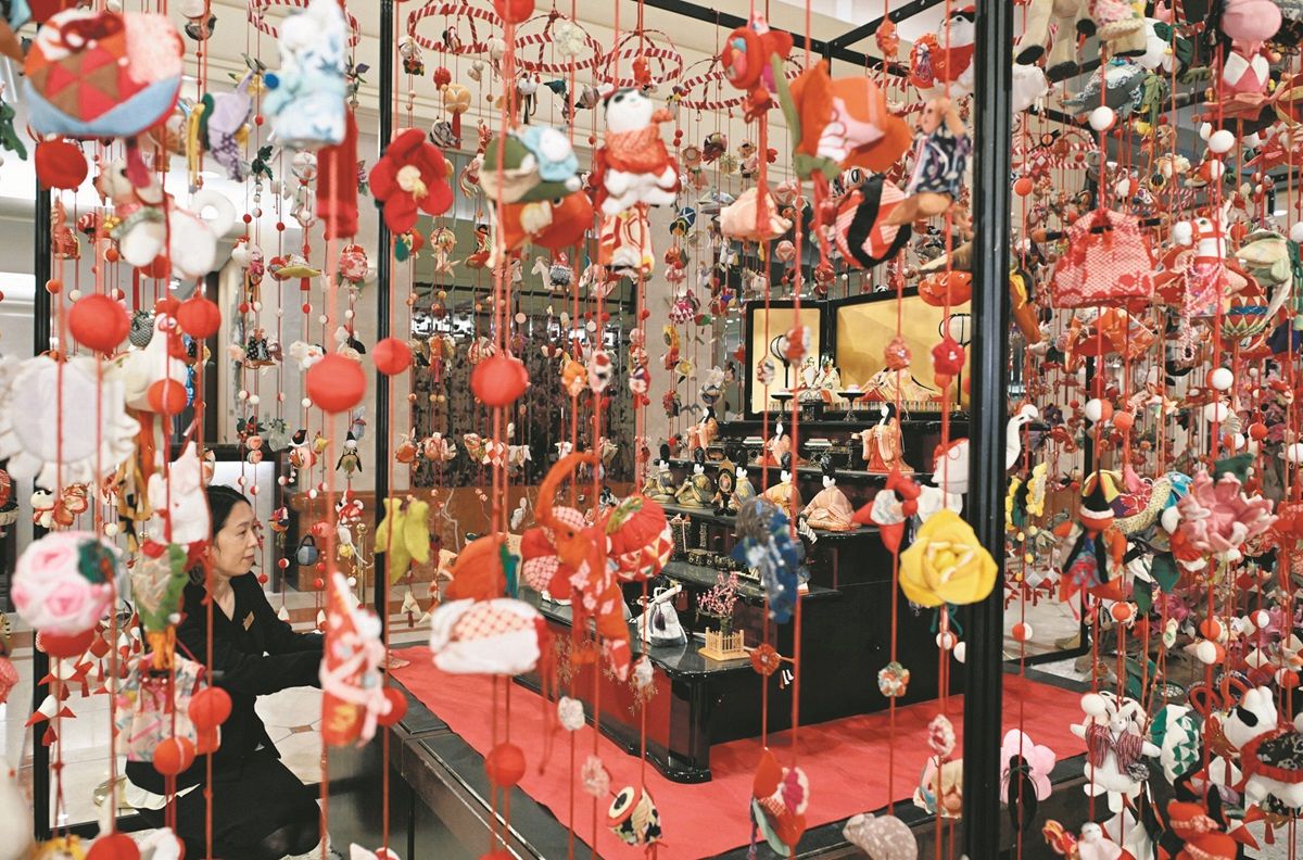 「つるし飾り」で桃の節句を華やかに「日本文化を楽しんで」 京王プラザホテルのひなまつり、31日まで