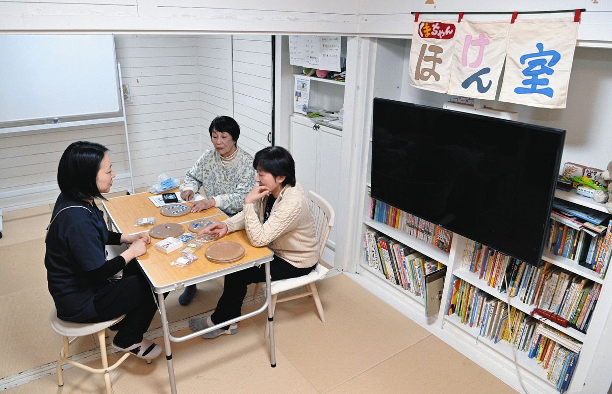 くまちゃんハウス内で住民向けに開いている「くまちゃん保健室」について話す看護師の寺嶋香里さん(中央)とスタッフの鈴木順子さん(左)、高尾久美子さん=東京都三鷹市で(中村千春撮影)