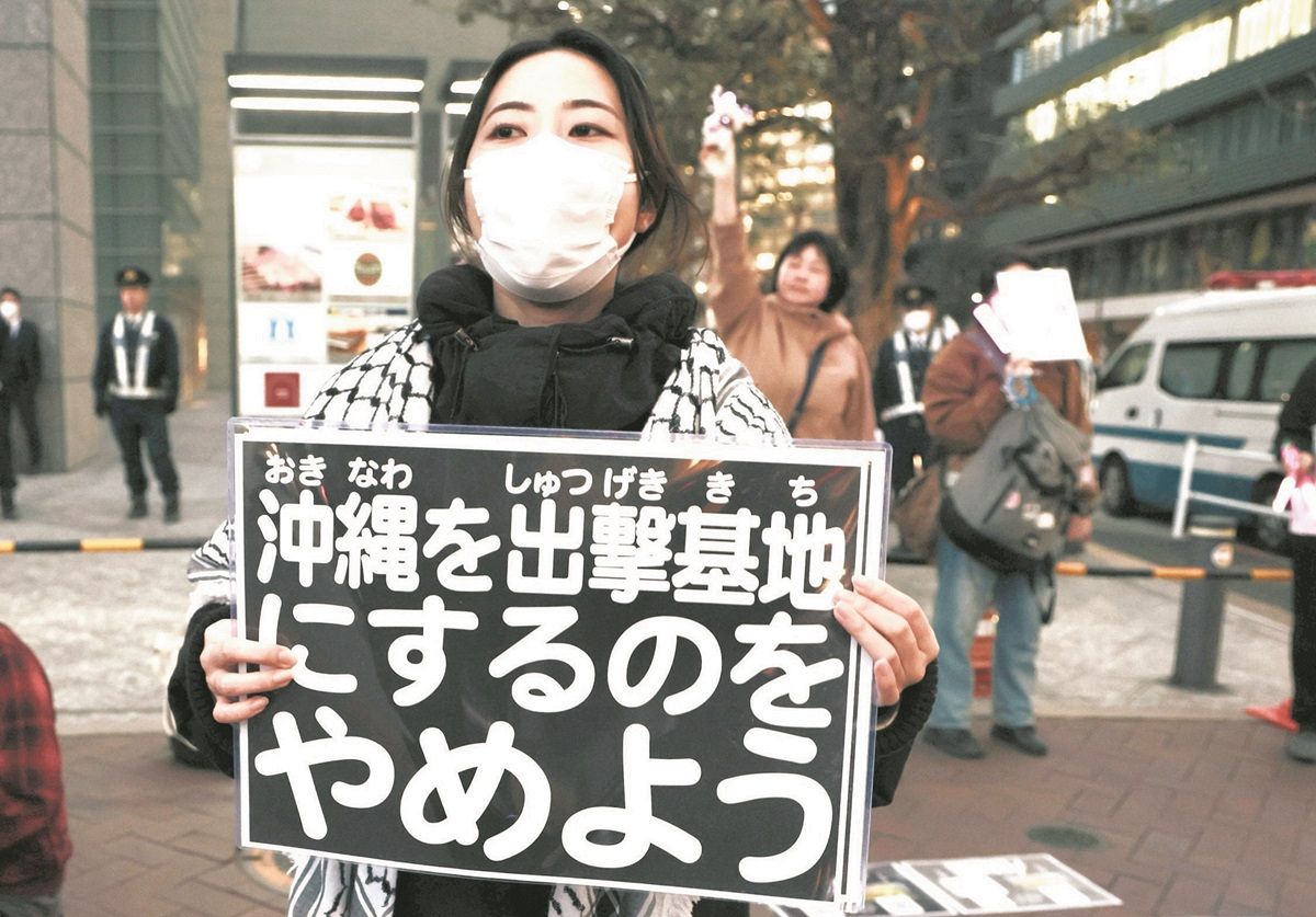 「沖縄はとっくにアメリカの戦争に巻き込まれている」 駐留の海兵隊が中東へ派遣、大使館近くで抗議