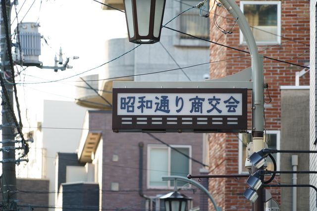 東横線の東側の祐天寺1丁目の路地には、庭に聳(そび)えるクスノキの巨木の向こうに木造の古めかしい校舎が見える平塚幼稚園というのがあり、駒沢通りまで出ると中目黒の方向に祐天寺がある。ここはもう何度も訪ねているので今回は立ち寄らず、鬼瓦(おにがわら)の屋根付きの庚申塔が立つ祐天寺2丁目の辻のところから北西側に口を開けた昭和通りに入った。昭和通り——とは、たぶん商店街が成立したのが昭和時代ということで、元競馬場の方からくねくねと延びてくるこの道は手元の明治時代の地図に記されているから、道自体はもっと古くからの筋だろう。鎌倉街道の1つかもしれない。