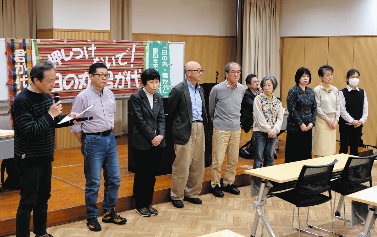 「都立学校の状況が日本中に広がる」と国旗損壊罪創設への懸念を口にする「日の丸・君が代」処分取り消し訴訟の原告ら=東京都豊島区で