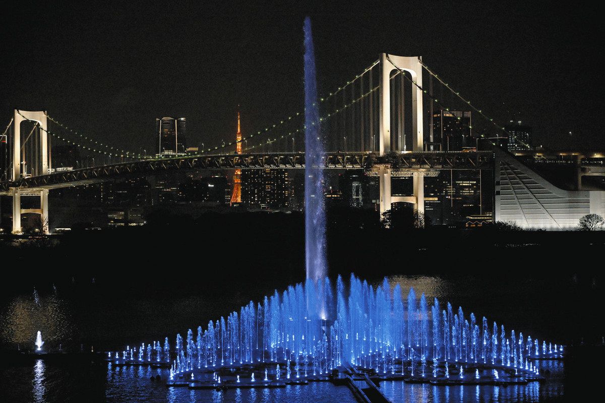 お台場海浜公園(東京都港区)に28日、世界最大級の噴水「東京アクアシンフォニー」が完成、噴水ショーが始まった。都が臨海副都心の新たなラ...