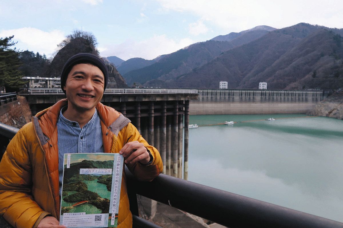 東京都の小河内ダム(通称・奥多摩湖、奥多摩町)の建設によって69年前に湖底に沈んだ小河内村の往事の様子を、湖面にかざしたスマートフォン...