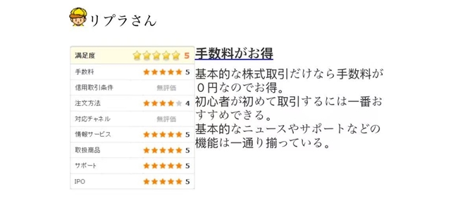 40代の女性からは、「アプリで保有資産の状況が見やすく、家計簿アプリと連携しているのも便利です。慣れてくるとネット取引も快適に使えました。」という声もありました。50代の男性からは、「取引頻度がそれほど高くない私でも、手数料無料の範囲で十分に対応できていて、とても助かっています。」という口コミが寄せられています。(オリコンCS調査部)