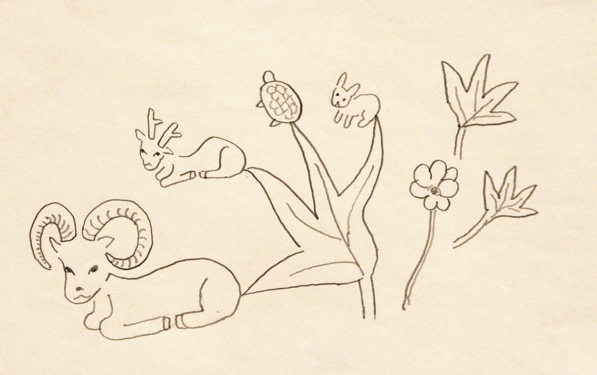 ヤツデから精を吸っている動物たちの幻視画