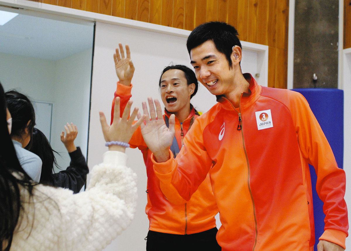 「応援に感謝」笑顔でタッチ デフリンピック・陸上 佐々木・青山選手 板橋・舟渡小を訪問