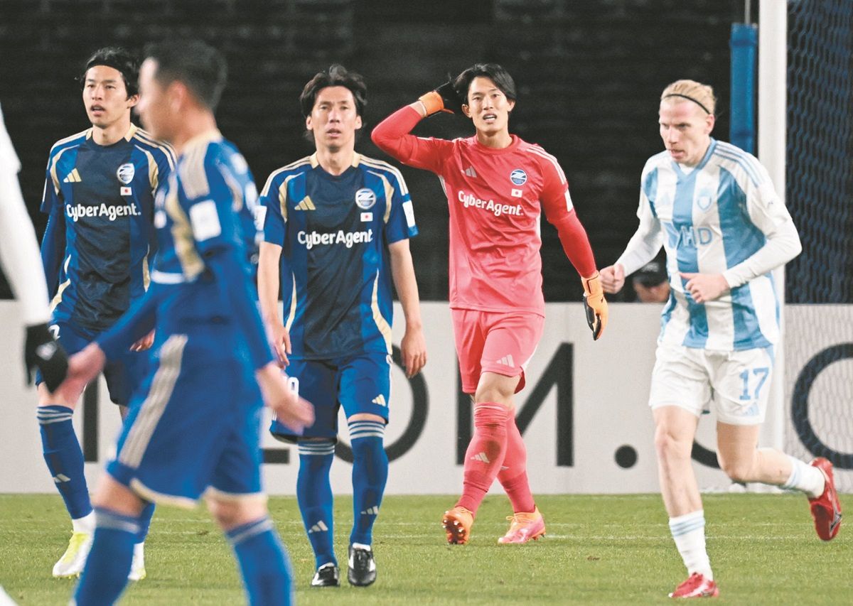 町田―蔚山HD後半、失点し悔しそうな表情のGK谷(右から2人目)ら町田イレブン=Gスタで(芹沢純生撮影)