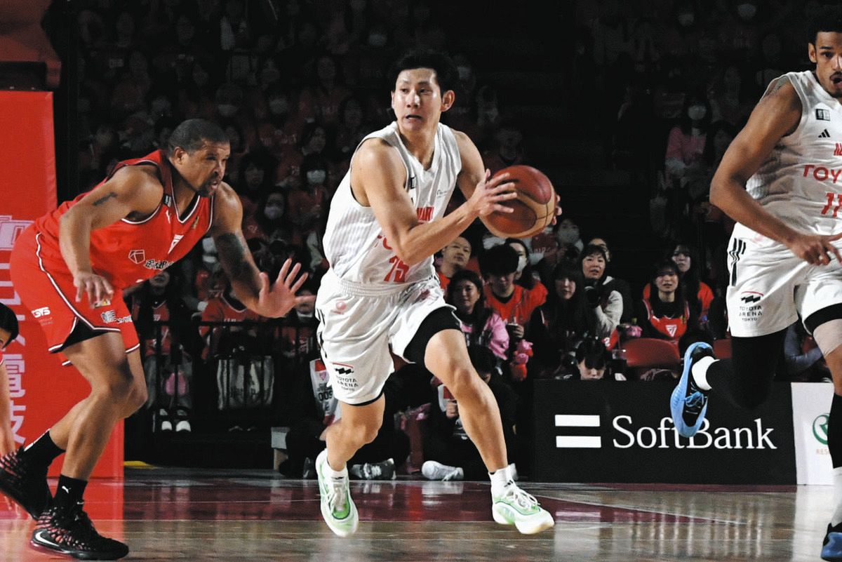 自慢の守備や鋭いドライブ、長距離砲で13得点、6アシストと試合もつくった小酒部が縦横無尽にコートを駆け、A東京を第1戦の勝利に導いた。