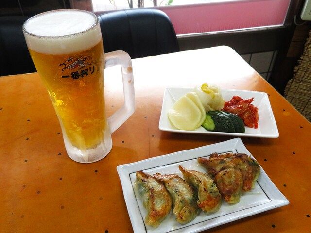 創業は昭和31年(1956年)。地元で根強い支持を得ているアットホームなお店です。名物の餃子は皮から手作りにこだわり、ニラとニンニクが効いた力強い味わいはビールのお供に最適。中華メニューに加え、しょうが焼きやカツ煮、焼き魚などの定食メニュー(単品注文可能)も評判です。オムライスやナポリタンといった洋食メニューにも熱いファンが多いそう。