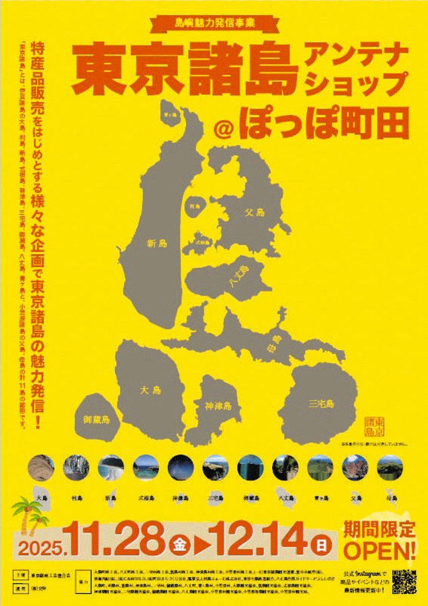 伊豆諸島や小笠原諸島の物産を紹介するアンテナショップ=写真はチラシ=が28日、東京都町田市のぽっぽ町田に期間限定でオープンする。島々の...