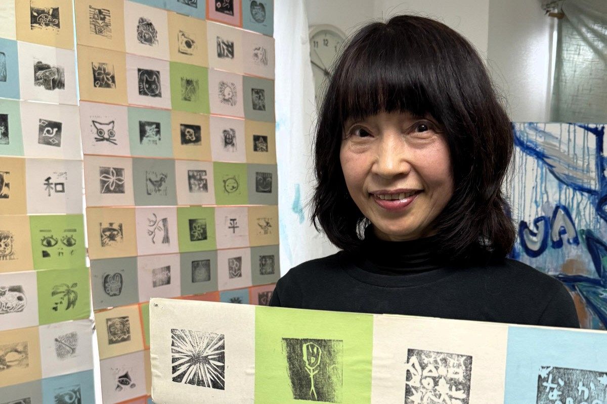 〈ひと ゆめ みらい〉 5センチ四方の小さな版画に、彫った人それぞれの平和への思いが込められている。一輪の花、ほおを寄せ合う母子、輝く...