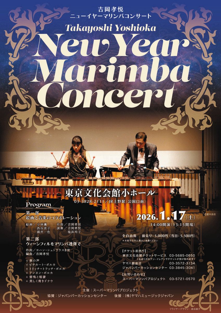 マリンバの美しい音色と名曲を楽しむ「吉岡孝悦ニューイヤーマリンバコンサート」が来年1月17日、東京・上野の東京文化会館小ホールで開かれ...